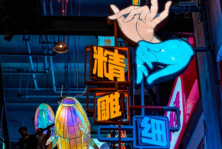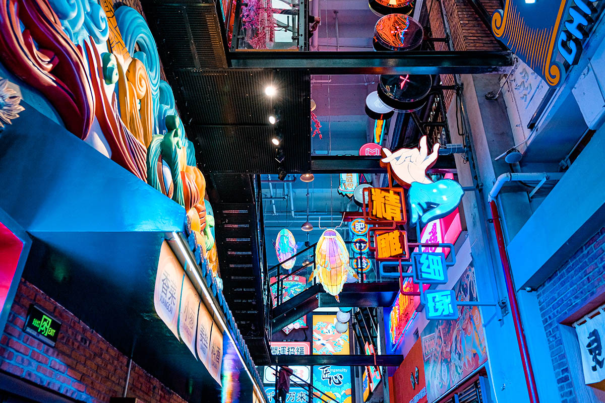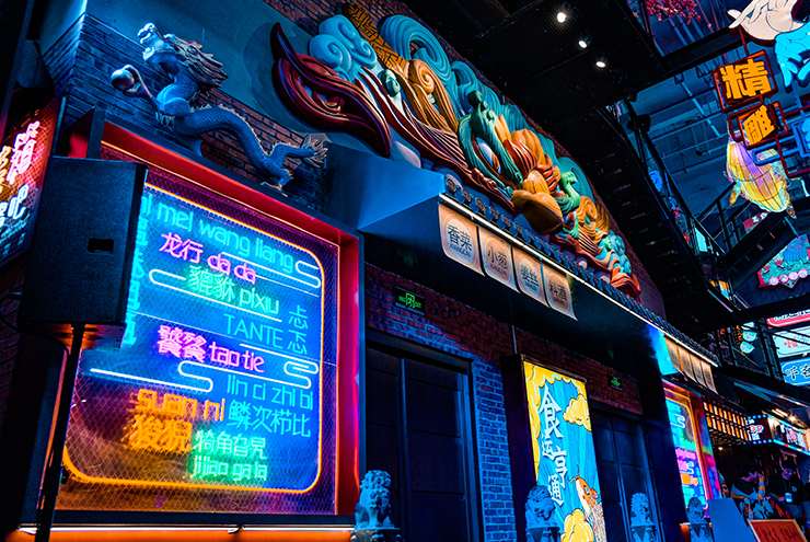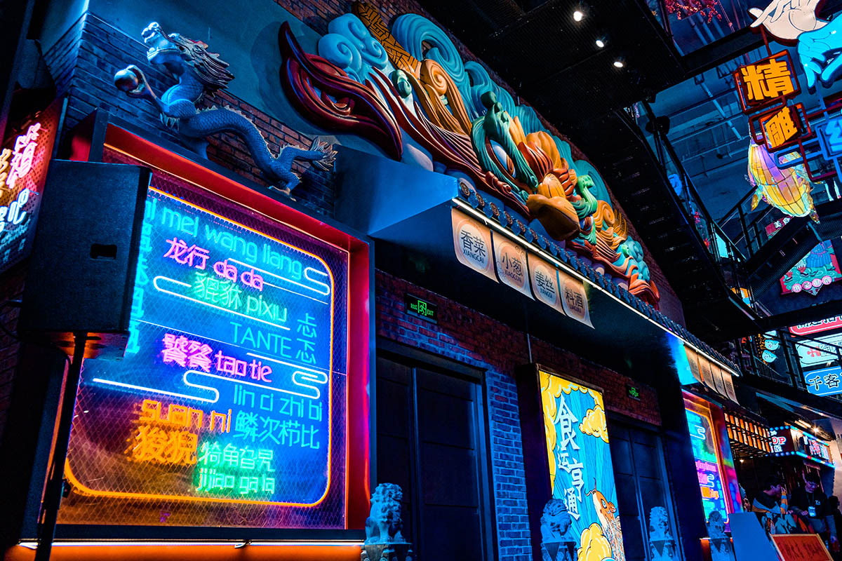 上海靜安大悅城,因獨特的屋頂摩天輪成為了魔都愛情城市地標,此次針對上海靜安大悅城霓虹街和未央街的改造升級,將會引領(lǐng)購物中心主題街的新的潮流風向標。我們引用饕餮、錦鯉等擁有中國文化烙印的元素,用藝術(shù)化手法將其形象有機的與空間結(jié)合在一起,打造了多個擁有非常奇幻色彩的全新節(jié)點。并且多維立體的將整個空間做了規(guī)劃,圍繞著夜間經(jīng)濟的消費,做了大量的氛圍提升。